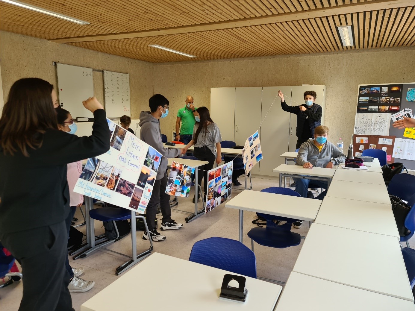 Als sich die Klassen dann wieder im Präsenzunterricht treffen konnten, wurden Auszüge aus den Interviews, Gedichten und die kreativen Arbeiten präsentiert. Gemeinsames Feedback zu dem Projekt war, dass es „mal was anderes war“, „Spaß gemacht“ hat und vor allem der Wunsch, dass die Corona-Pandemie überstanden und das auf den Plakaten Gezeigte bald wieder zur Normalität wird.