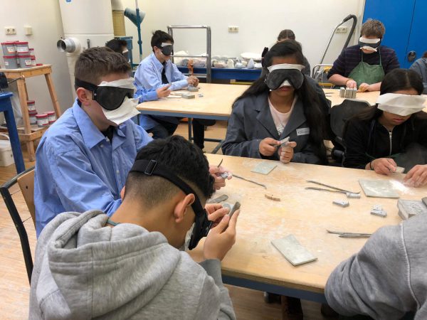Am 24.01.2019 begann der Workshop in der Stiftung mit einem sehr herzlichen Empfang und einer kurzen Einführung über den Ablauf von Frau Heß, der Leiterin des Workshops. Die Schüler haben dann jeweils einen Kittel und Brillen, die eine totale Blindheit bzw. Brillen, die gewisse Sehbehinderungen simuliert haben, erhalten. Mit der Ausrüstung sind wir dann in die Werkstatt, wo die Bearbeitung eines Specksteins auf uns wartete. Mit verschiedenen Werkzeugen haben alle Schüler einen schönen Anhänger geformt und poliert. Wer eine Frage hatte, musste sich melden und darauf hoffen, dass Frau Heß die Meldung auch bemerkte, da die Brillen während der Bearbeitungszeit nicht abgesetzt worden sind und die 8a demnach nicht wussten, wo Frau Heß sich gerade aufgehalten hat. Das haben alle ganz hervorragend gemeistert und es kamen super tolle Ergebnisse dabei heraus, worauf sie alle auch sehr stolz waren. Auch die Veranstalterin hat die Schüler sehr gelobt, dass sie für das erste Mal so gute Ergebnisse erzielt haben. Nach der Bearbeitung des Specksteins wurde dieser durch einen Lederriemen gezogen und zu einer Kette umfunktioniert. Manche Schüler haben sich dazu entschieden, einen Freundschaftsanhänger daraus zu machen. Im Anschluss daran hat Frau Heß sich Zeit für die im Kunstunterricht ausgearbeiteten Fragen genommen und auch nochmal erklärt, welche Möglichkeiten es für blinde und sehbehinderte Menschen gibt, sich den Alltag zu erleichtern bzw. sich diesen so schön wie möglich zu gestalten. Die Schüler stellten viele und gleichzeitig auch sehr beeindruckende Rückfragen. Als Geschenk gab uns Frau Heß noch einen kleinen Umschlag mit, worin alle Vornamen der Schüler in Braille enthalten waren sowie ein Alphabet in Braille, damit wir in der nächsten Unterrichtsstunde gemeinsam herausfinden können, welcher Name der Schüler, auf dem jeweiligen Papier geschrieben steht. Mit 25 Specksteinen um den Hals und einem sehr gelungenen Tag, sind wir dann zufrieden und begeistert wieder zurück zur Schule am Mainbogen gereist.