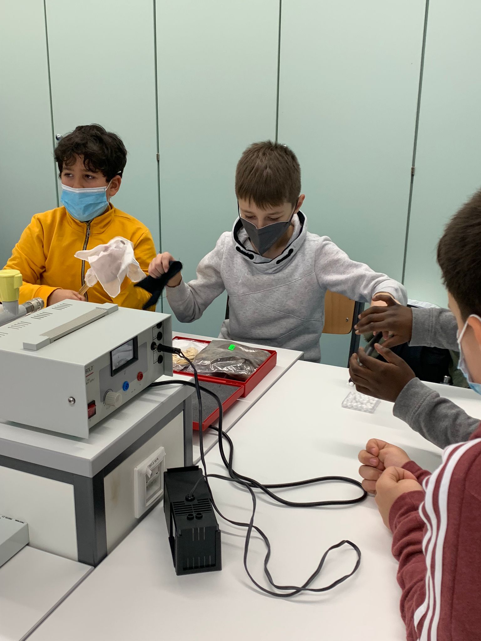 Die Schülerinnen und Schüler durften im Physikraum unter Anleitung von Physik-Fachbereichsleiterin Vitalija Martijn experimentieren und haben erforscht, wie Strom produziert wird.